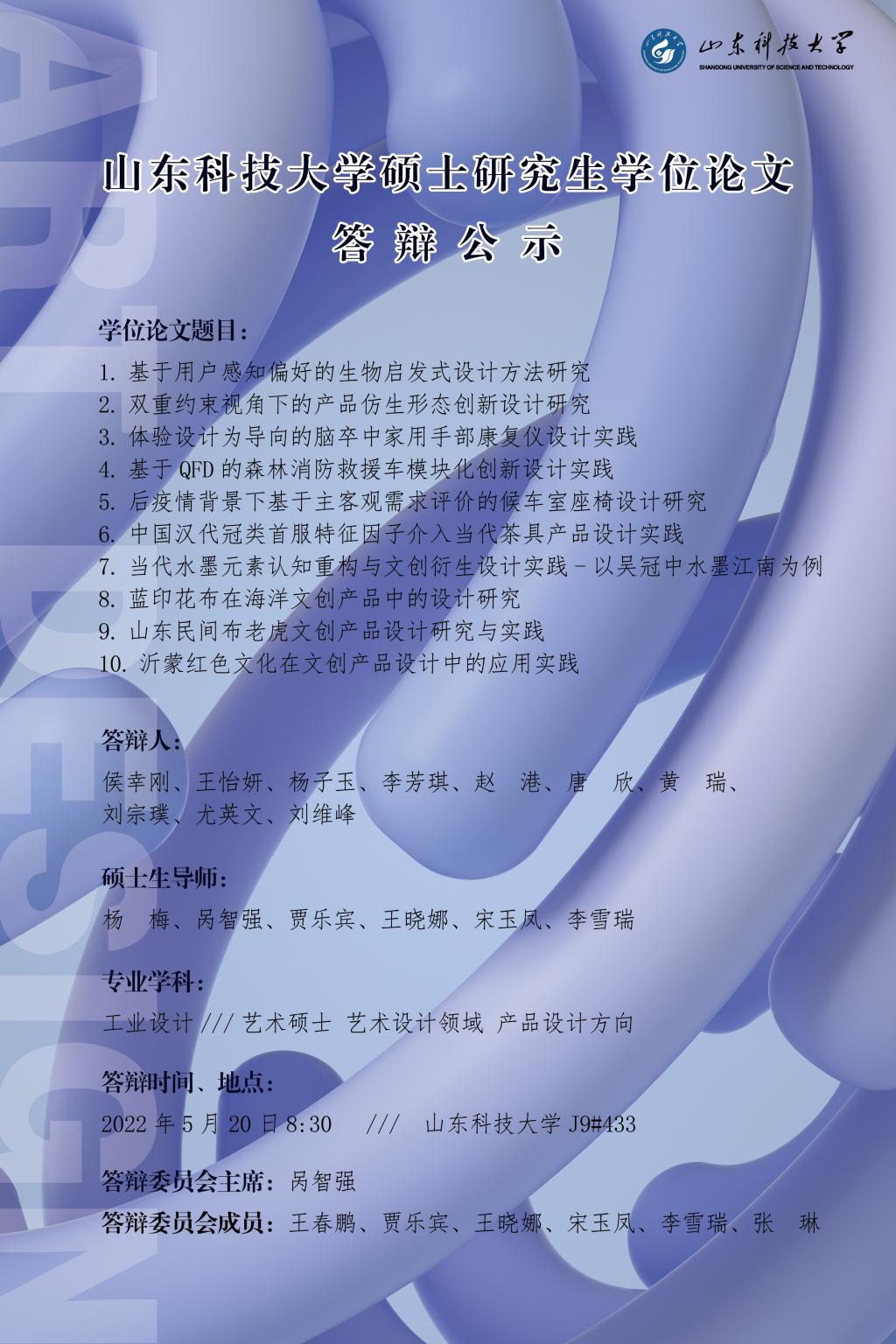 必赢3003no1线路检测中心工业设计、艺术硕士(MFA)研究生学位论文答辩公告