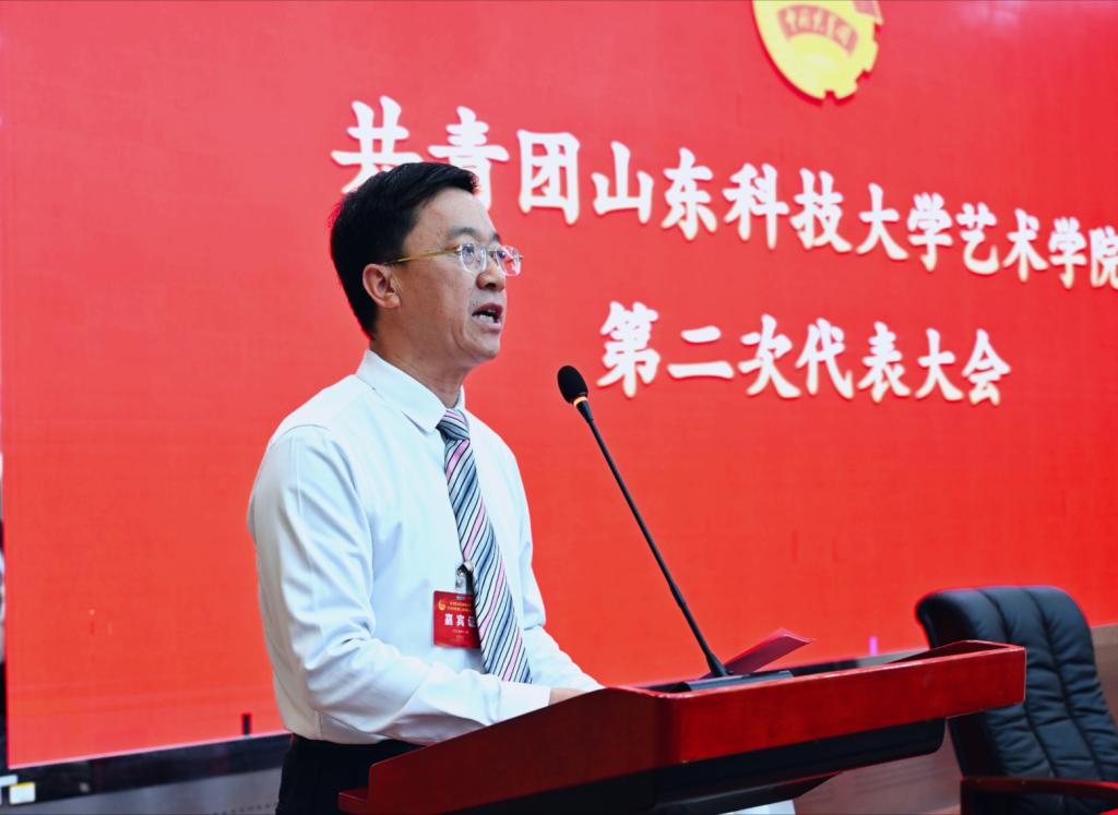 王斌对过去一段时期学院共青团工作取得的扎实成效给予肯定,指出学院团委紧紧围绕立德树人根本任务,深化“艺术+思政”育人模式,充分激发了艺术学子的担当与风采,使艺术动能“强”了起来。接下来代表学院党委对广大团员青年提出要求和希望:一要坚定理想信念,做眼中有光、胸有家国的新时代青年,将艺术理想融入党和人民事业;二要锤炼过硬本领,做脚下有路、肩有担当的新时代青年,在服务社会实践中增长才干;三要引领时代风尚,做心中有德、行有风骨的新时代青年,践行社会主义核心价值观,传播正能量。
