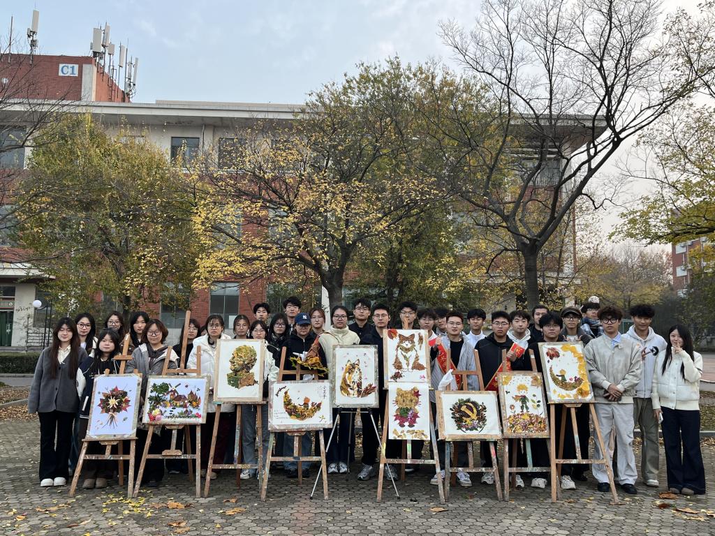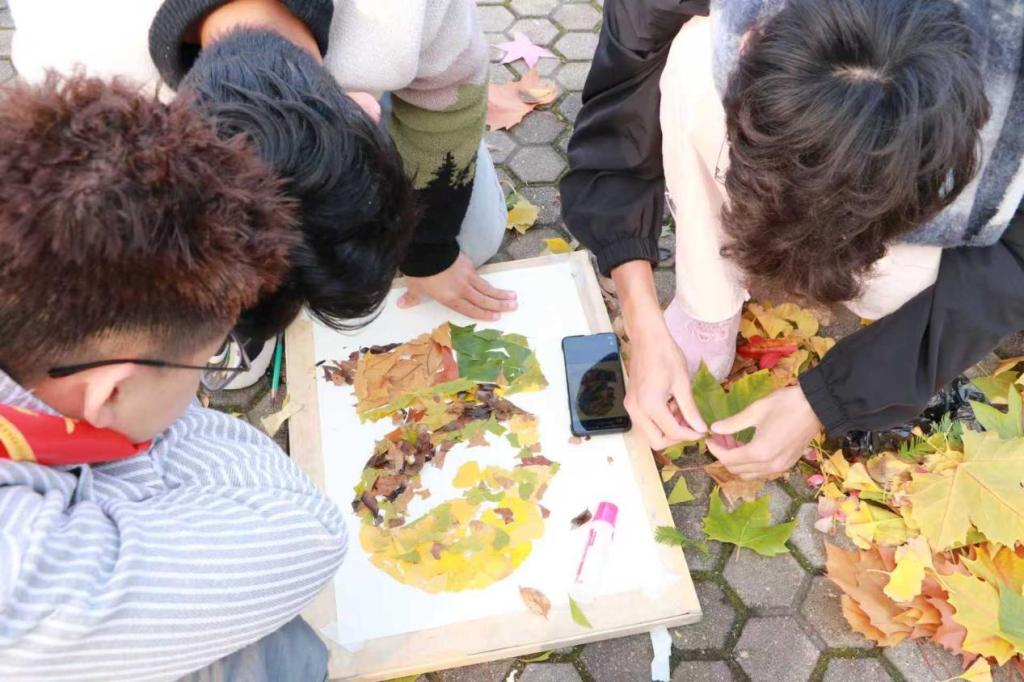 活动前期,志愿实践部的同学们主动参与筹备,带着对秋日的期待走进校园角落,捡拾形态各异的落叶,以拼贴、彩绘、剪裁等方式,将零散秋意转化为画作、书签、立体场景等作品——有的用枫叶拼出小动物,灵动可爱;有的在银杏叶上绘出绽放的花束,温柔治愈。活动展示现场,这些落叶作品有序陈列,金黄、橙红的色调瞬间拉满秋日氛围,引得路过师生纷纷驻足。大家一边欣赏作品里藏着的巧思,一边讨论落叶创作的创意,不少人表示,看着原本要凋零的落叶在指尖“重生”,既感受到了金秋的独特韵味,也体会到了低碳美学的乐趣,更定格了专属于这个秋天的温暖记忆。现场氛围轻松惬意,满是秋日里的鲜活与治愈。