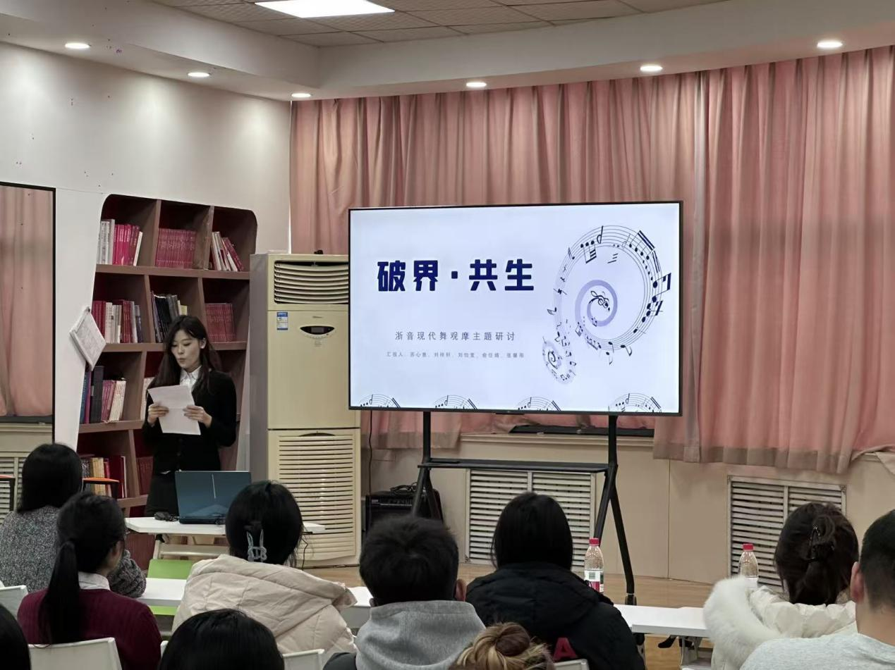 此次研讨会同学们围绕在江浙地区开展的为期五天的音乐采风,并在此基础上共拟了六个题目。分别为:《破界·共生》浙音现代舞观摩主题研讨、浙音青年作曲家音乐会研讨、结构与重塑——乔治·费雷德里希·哈斯《11000根弦》观摩专题研讨、江浙地区戏曲音乐专题研讨(以苏州评弹《姑苏水巷》为例)、木管与现代派音乐交织、声韵江南——江浙民族与戏曲元素在声乐演唱中的融入。这六个专题由六个小组(每组5人)分别完成,小组成员则各司其职,主要完成查阅资料、整理资料、搜集音响资料及PPT的制作等方面,并推举出一人在研讨会上讲解专题内容。期间,各主讲人通过对本专题的认真讲解,让现场听众直观感受了同学们在此次音乐采风过程中的所见所闻。