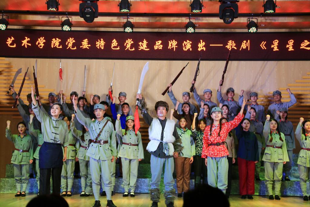 6月16日、19日,必赢3003no1线路检测中心开展特色党建品牌、党性教育专场演出,也是第四届“惟真·尚美”大学生艺术节的特色内容,为全校新党员演出经典歌剧《星星之火》,学院师生党员、全校400余名新党员共同观看了歌剧。