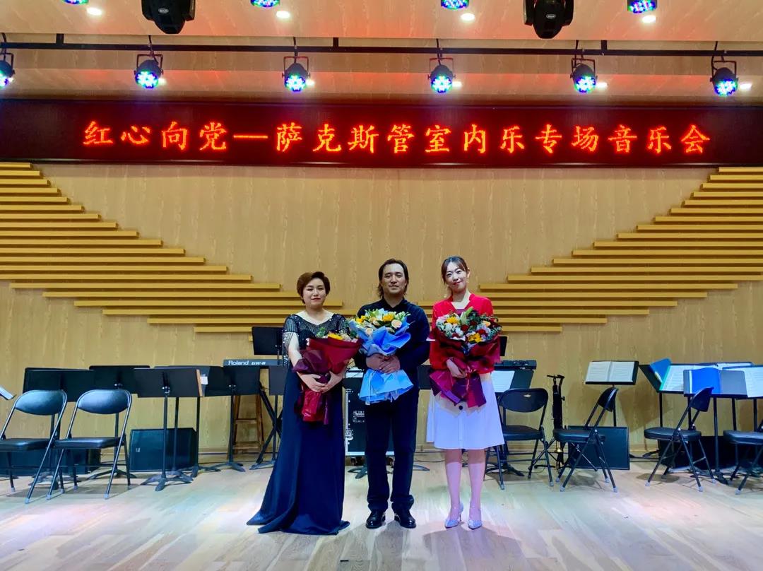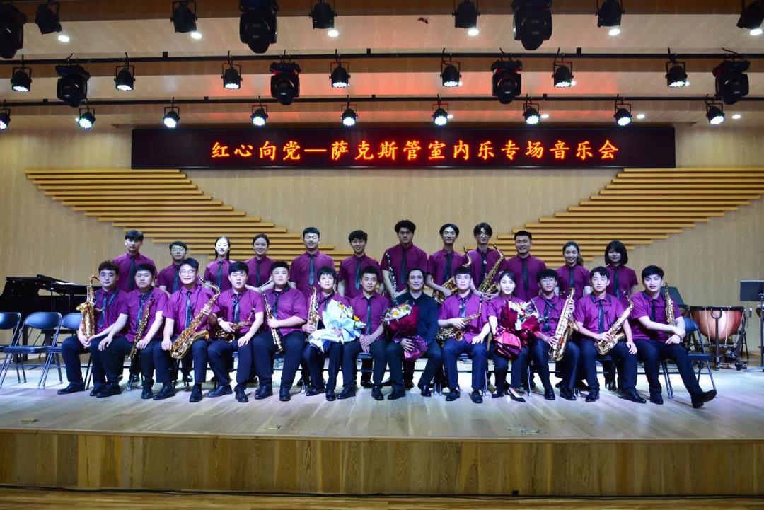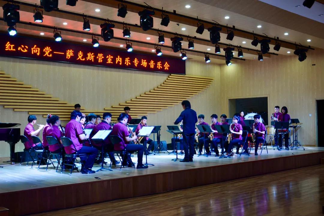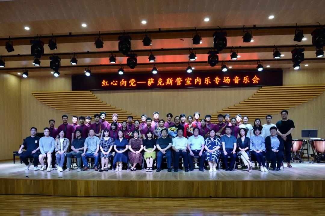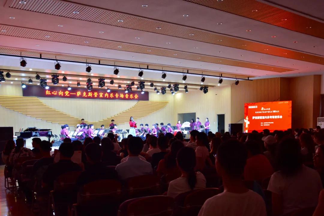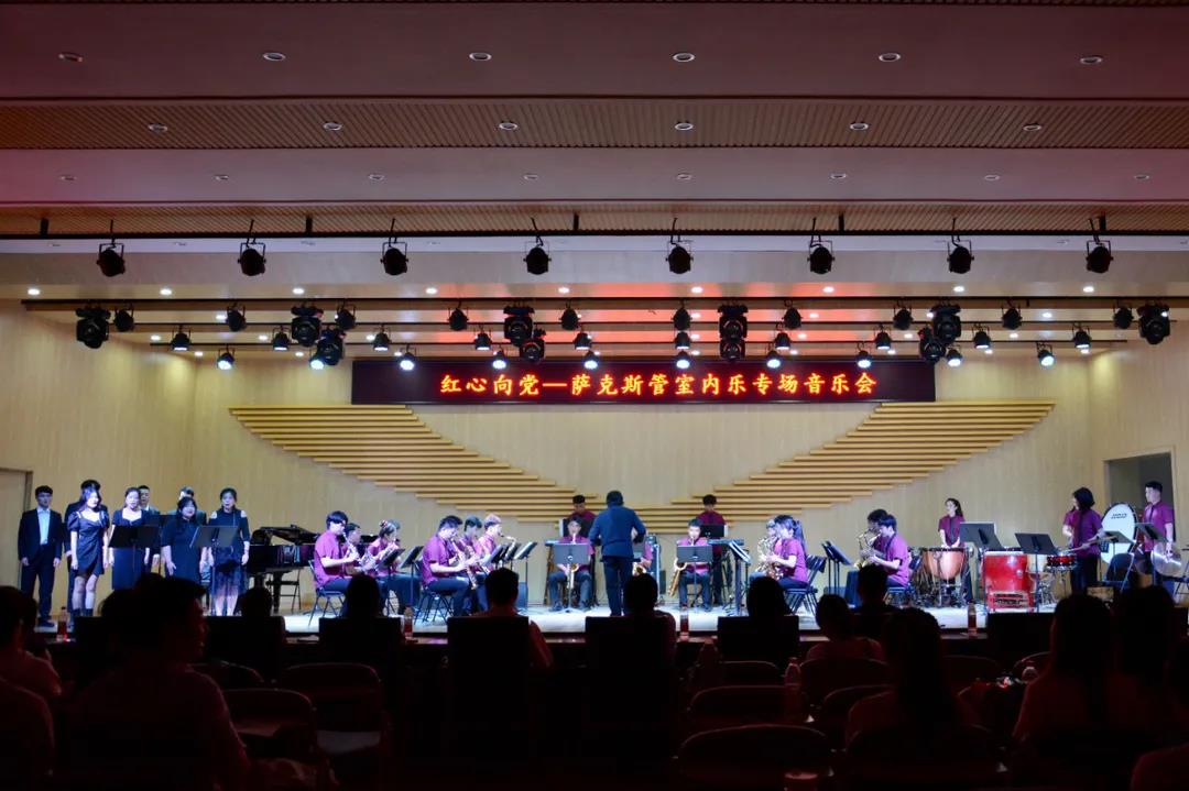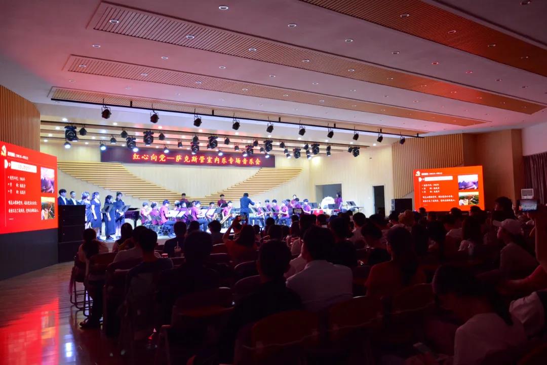 6月8日晚,在必赢3003no1线路检测中心多功能厅音乐系党支部进行了一堂特色的党课,党史中的音乐——“红心向党”庆祝中国共产党成立100周年萨克斯管室内乐专场音乐会。必赢3003no1线路检测中心党委书记王凯、副书记卫雪、副院长乔磊、副院长赵娜及必赢3003no1线路检测中心全体教师党员和师生出席了音乐会。音乐系党支部书记郑晓晴作为党课讲述人,将百年来中国共产党在一次次血与火的淬炼与砥砺中,与中华民族同进步、共成长的光辉历程用音乐会的方式娓娓道来。