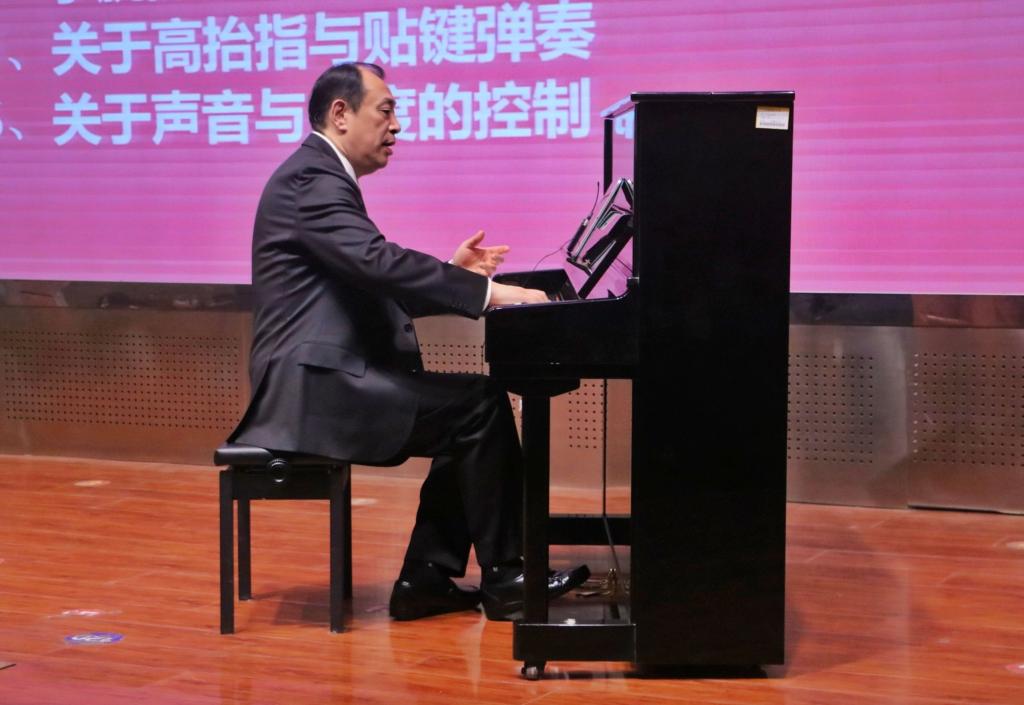 5月31日上午,张晋教授于必赢3003no1线路检测中心多功能厅开展了钢琴大师班。此次大师班,张晋教授从作品分析处理、演奏技巧的要求等方面,以实际教学的方式进行了深入浅出、通俗易懂地讲解。我校部分师生聆听并参与了此次大师班。