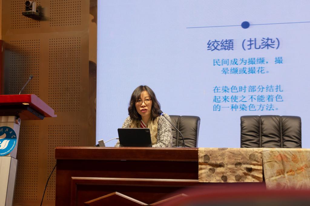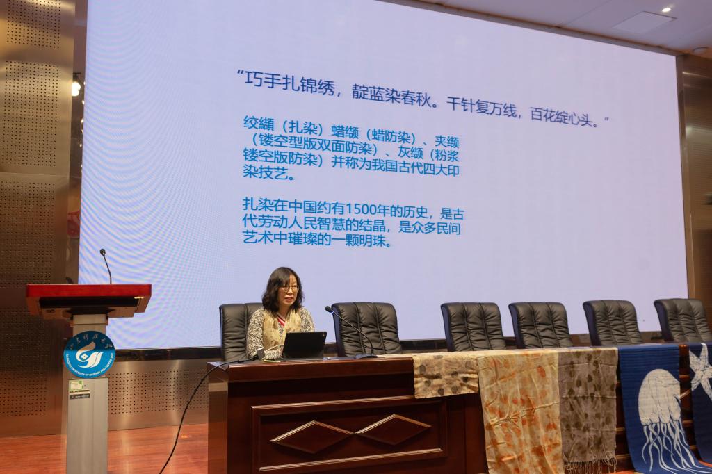 2021年1月7日,必赢3003no1线路检测中心宋玉凤老师的美育公开课《传统印染艺术》在J9-144如期举行。