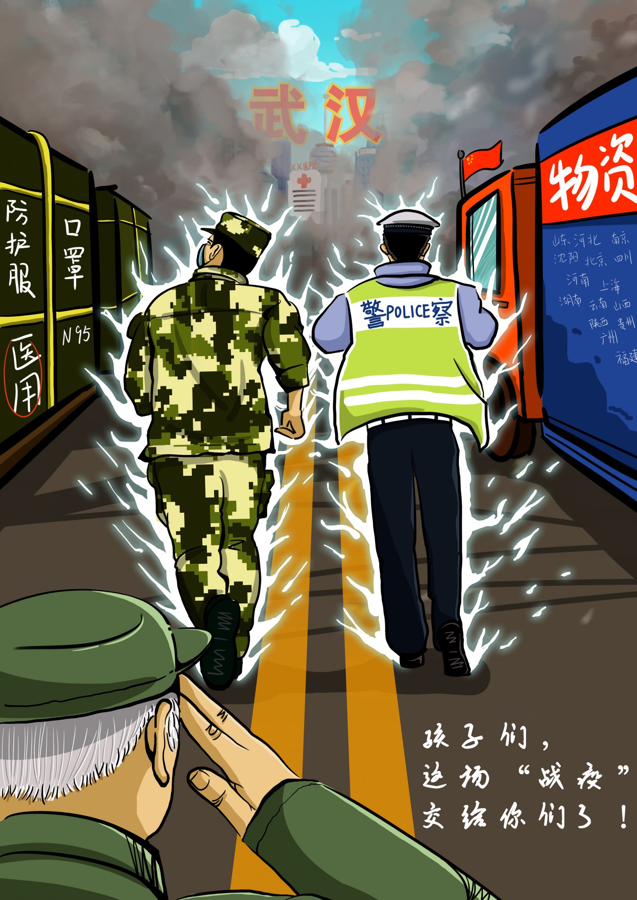 如何在家做好自我防护?一线的医护工作人员如何拼尽全力抢救患者?如何保护野生动物,与大自然和谐相处?火神山医院和雷神山医院是如何搭建和救治病人的?同学们用一张张海报从不同的视角和内容讲述了疫情下的故事,给人以启示。同学们表示:我们虽然无法奔赴一线,但我们可以拿起手中的笔,用我们的创意智慧,设计出鼓舞斗志、传播科学、凝聚力量的公益海报。用最直接的感情、用最大的力度去吹响设计的集结号!(王钰淇)