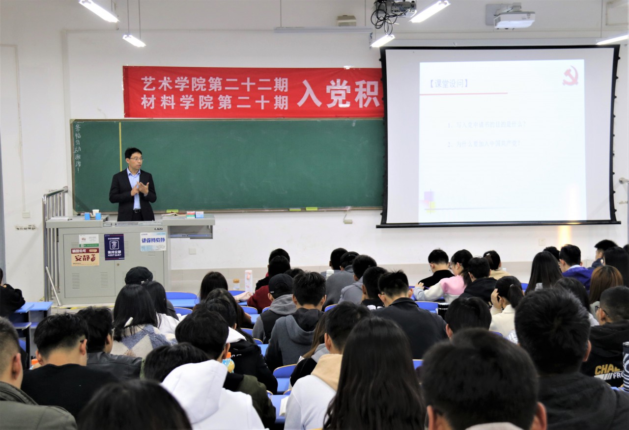 11月12日,材料学院党委书记申兆亮为入党积极分子培训班讲授第四讲——《党的性质和指导思想》。