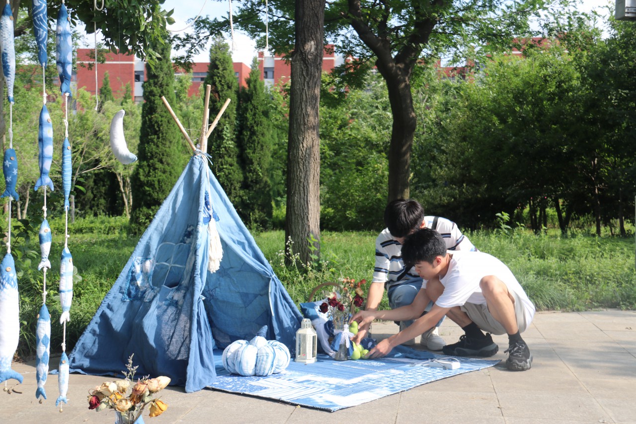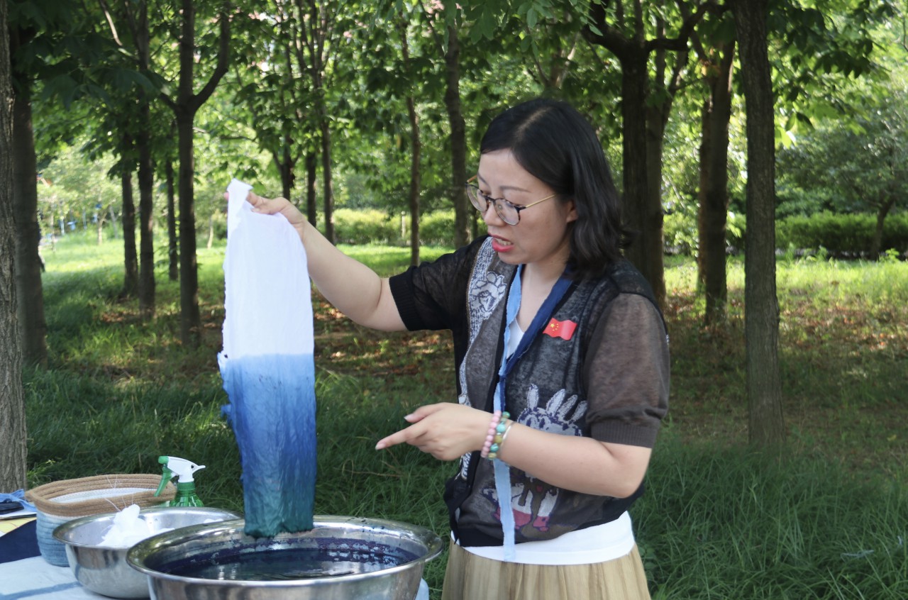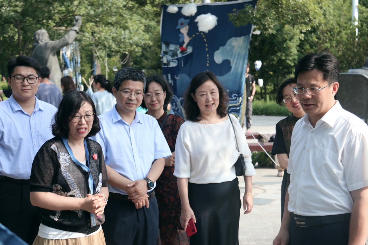 由必赢3003no1线路检测中心主办,山东省中华优秀传统文化传承基地——传统蓝染工艺承办的“惟真尚美艺术节——大地艺术展”于7月1日下午在C区名人园开展。学生处副处长朱景星、必赢3003no1线路检测中心领导班子成员、团委、教科办及各系负责人莅临指导参观。