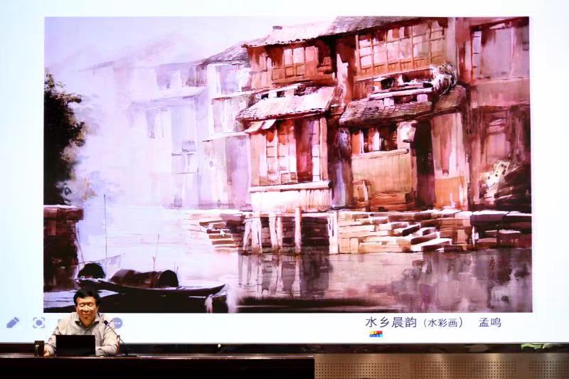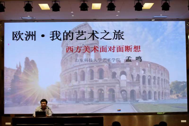 孟鸣教授、硕士研究生导师,中国美术家协会会员,山东美术家协会理事、副秘书长,山东水彩画会副会长,曾多次在德国、奥地利等举办个人画展、讲学并赴欧洲多国考察写生。本次讲座,他从中西方文化解析、欧洲美术以及欧洲古镇赏析等方面从艺术的角度进行了分析和解读。他以故事性的讲解形式,结合他在欧洲的写生创作,把我们带入了欧洲,走进了欧洲艺术,共同体验了西方美术的魅力,是一次丰富多彩的艺术盛宴和非凡的旅行。