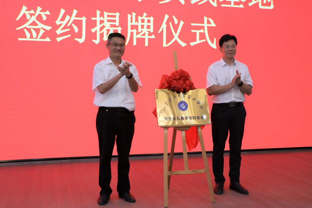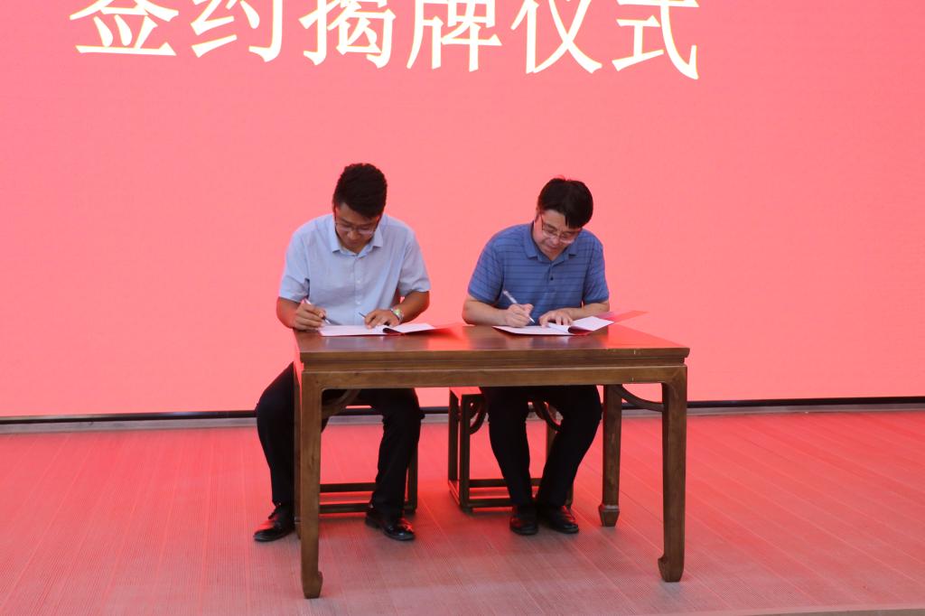 王凯分别与老城街道办事处、孙伯镇政府主要负责同志为基地揭牌。乔磊代表必赢3003no1线路检测中心分别与老城街道君子文化园负责人、孙伯镇五埠岭景区负责人签订建立教学实践基地协议。