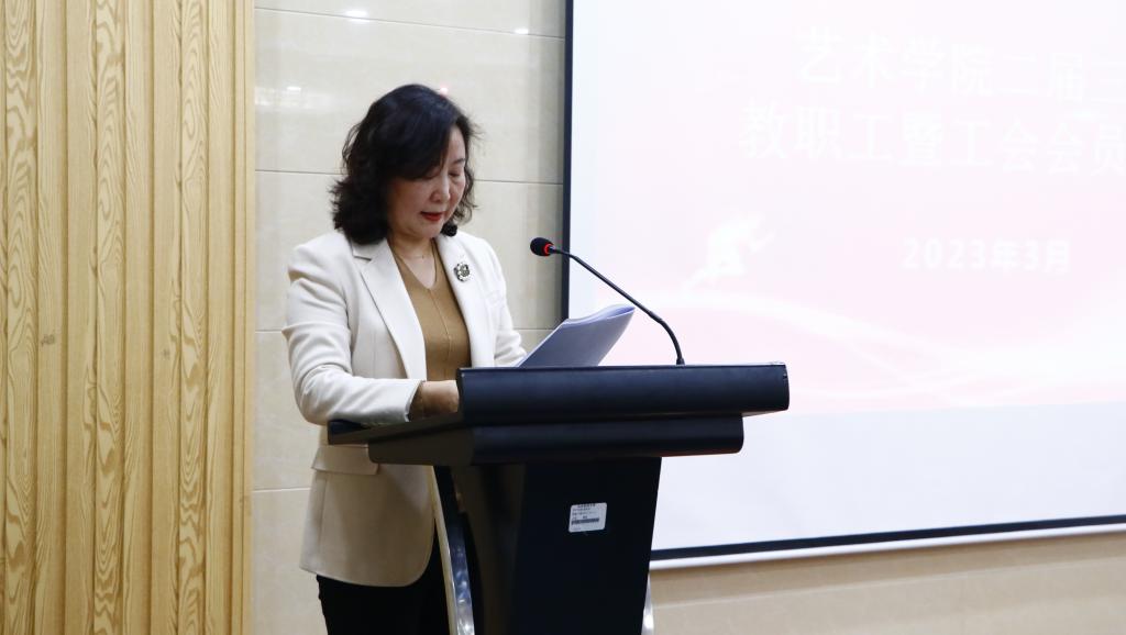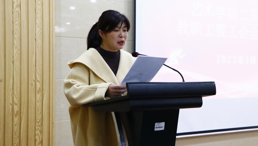 杨梅作了题为《凝心聚力矢志奋进谱写学院高质量发展新篇章》的工作报告,对学院党建工作、本科教学工作、学科建设与研究生教育工作、美育工作、科研工作、学团工作、疫情防控和安全工作等方面进行了回顾总结,分析了学院发展面临的问题,部署了2023年工作的主要任务。