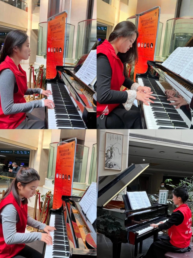 我院学子山小宇、刘未、张晨、岳君好、宋雨欣、杨晨、徐永川同学化身志愿者先后演奏了《花儿为什么这样红》《人世间》《爱的致意》等11首知名的中外经典钢琴曲和《感恩的心》《友谊地久天长》等3首萨克斯独奏,演奏会历时2小时在观众热烈的掌声中圆满结束。