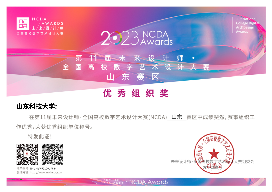 未来设计师·全国高校数字艺术设计大赛(NCDA)是由工信部人才交流中心主办,赛事始于2012年,每年举办一届,已成功举办十一届,入选中国高等教育学会发布的《全国普通高校学科竞赛排行榜》,是高校教育教学改革和创新人才培养的重要竞赛项目之一,具有广泛影响力。大赛秉承“设计为人民服务,培养未来设计师”的理念,坚持艺术与技术并重、学术与公益并重,为大学生搭建施展才能的舞台,开拓学生视野,培养学生创新意识,提高专业实践技能,激发学生的创新活力。本届大赛共有1,826所高校参赛,共征集289,865件作品,设立29个省级赛区;985、一流大学参赛率达92.85%;设计学学科评估C-以上高校100%参赛;大赛采取“五轮三级双公示”的评审赛制,作品经过“校级赛”-“资格赛”-“省级初赛”-“省级决赛(公示)”-“全国总决赛(公示)”,分别决出省赛、国赛奖项。