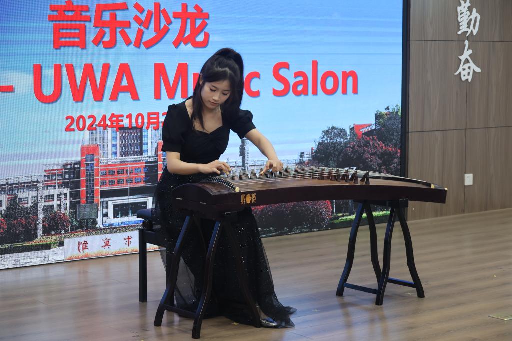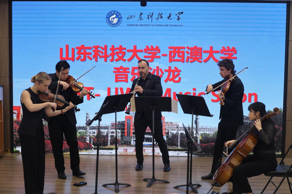 座谈会后,山科-西澳大学音乐沙龙拉开序幕,诸葛福民致辞,他表示,音乐可以跨越语言和文化的界限,促进交流、增进理解、拉近友谊,相信此次音乐沙龙可以拉近两校青年的心灵距离,谱写两校青年交流的新篇章,为两国文化艺术的繁荣发展助力添彩。