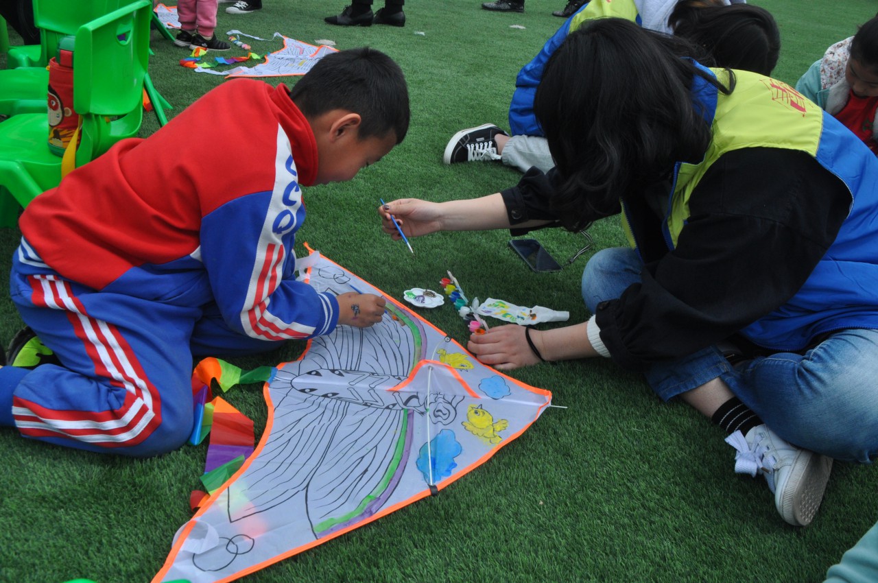 活动以比赛的形式,将孩子们分为绘风筝组和剪纸花组,由孩子们亲手制作纸雕,意在提高他们的动手能力。比赛伊始,孩子们便很快投入到纸雕的“研究”中,玩得不亦乐乎。其间,志愿者们也热心主动地帮助孩子们完成较困难的环节,双方相处得十分和谐愉快。有的孩子完成任务后,便拉着哥哥姐姐在校园里放风筝,他们一起欢呼、一起奔跑,脸上洋溢着欢快的笑容,在灿烂阳光的照耀下更显青春与活力。