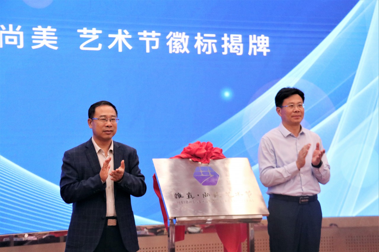 乔卫国、王凯共同为艺术节徽标揭牌。艺术节徽标设计大赛作为本次艺术节活动之一,作为艺术节活动的序曲前期已经组织开展。最终,2019级1班视觉传达设计专业江国庆同学的设计作品获得最佳设计奖,并被采用为惟真尚美大学生艺术节徽标。