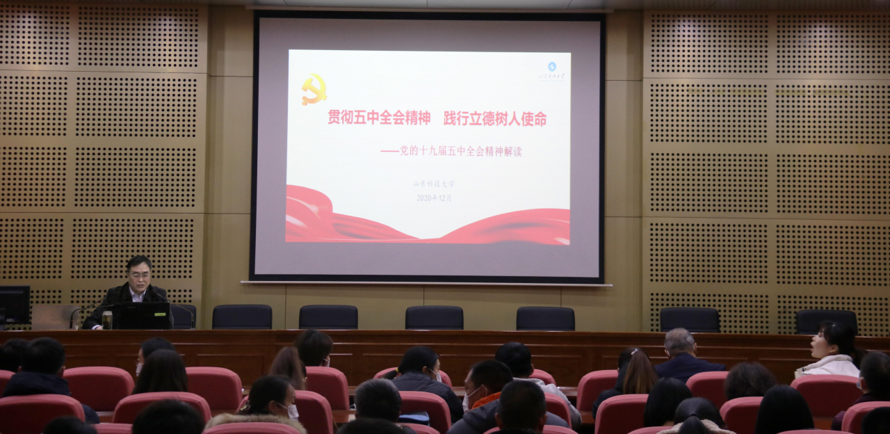 会上,高建广紧扣全会主题,从党的十九届五中全会基本情况,党的十九届五中全会的主要精神,贯彻五中全会精神、践行立德树人使命三个方面进行了全面宣讲和深入解读。高建广强调,党的十九届五中全会是在全面建成小康社会胜利在望、全面建设社会主义现代化国家新征程即将开启的重要历史时刻召开的一次十分重要的会议。结合错综复杂的国际形势、艰巨繁重的国内发展改革稳定任务和新冠肺炎疫情的严重冲击情况,高建广系统地介绍了到2035年基本实现社会主义现代化的9个远景目标和“十四五”时期经济社会发展的六项新目标,以及全会提出的12项举措,阐明了构建新发展格局的战略构想和重要着力点,着重强调了坚持党的全面领导的重要性。