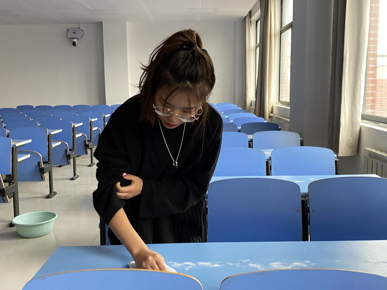 11月1日下午,由校团委主办,必赢3003no1线路检测中心学生会志愿实践部承办“课桌文化清洁”活动在J7教学楼有序展开。