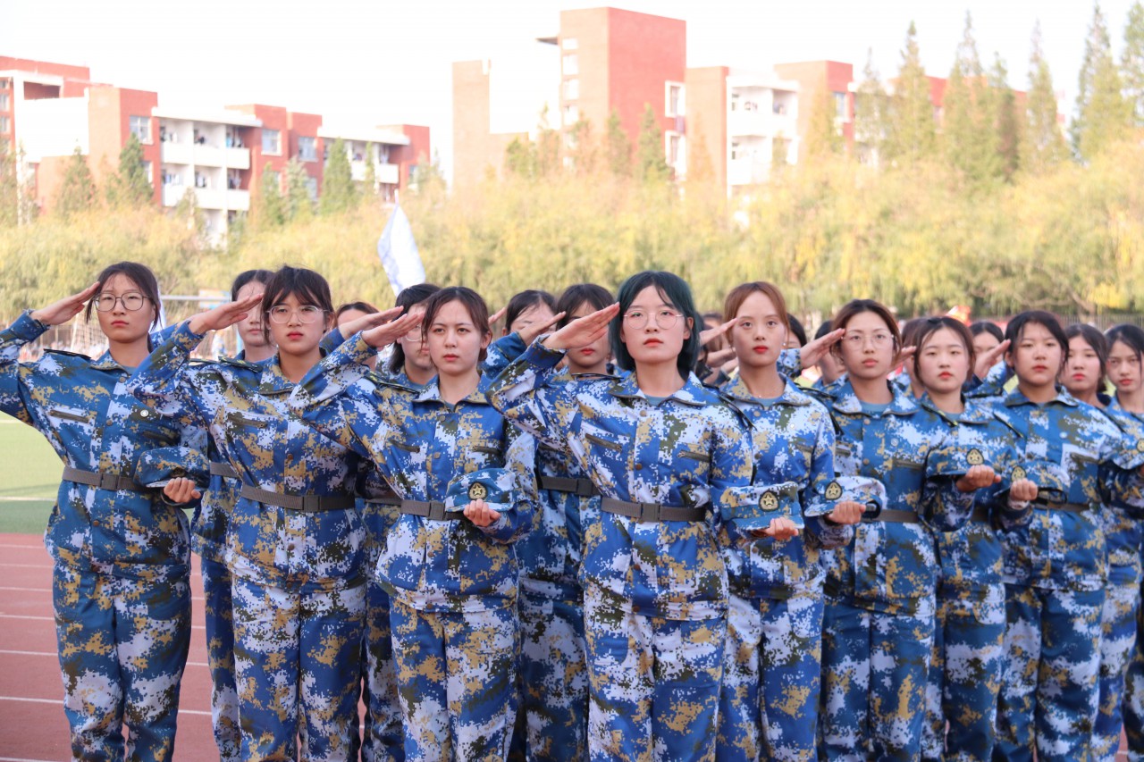 伴随着雄壮的国歌声,2020级新生组成的军训汇演方阵进行军训成果展示。整齐的步伐、挺拔的身姿、饱满的精神展现了当代青年的魄力。特色舞蹈《75厘米》和《少年》中,活力四射的女生方阵用热情的舞姿展现了巾帼风采;刚毅有力的男生方阵展现了不逊的身姿和英勇的魄力,赢得全院师生的阵阵掌声。