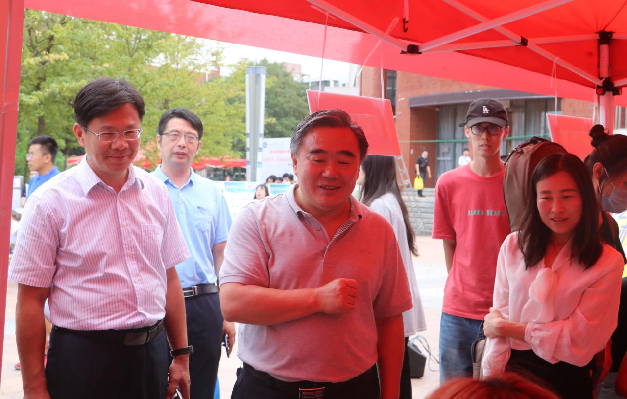 校党委书记罗公利、校长姚庆国、副校长高建广等一行来到必赢3003no1线路检测中心迎新报到处,了解学院迎新工作和各专业新生报到情况,并和新生亲切交谈。