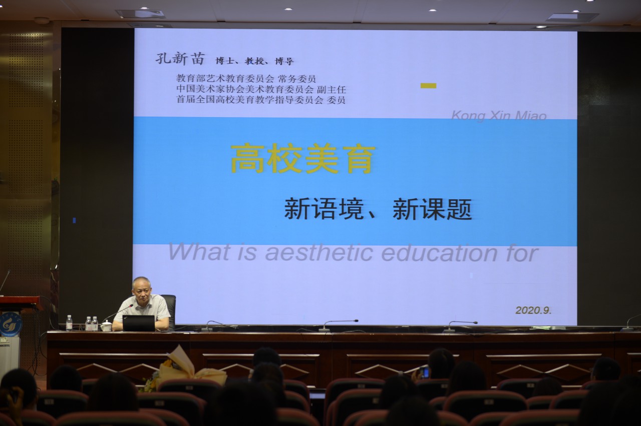 山东师范大学教授、全国高校美育教学指导委员会委员孔新苗教授以《高校美育-新语境,新课题》为题作了精彩的讲座。本次讲座主要分为三个方面进行分享,首先是“美育”在不同历史阶段的含义;其次是“美育”在当下所面临的新语境和新课题;再次是探索“美育”新模式、新经验。孔教授的讲座内容丰富多彩,语言生动,善于启发,其个人魅力深深地折服了在场的老师和学生。最后,在场的师生与孔教授进行了积极的现场交流,反响热烈。
