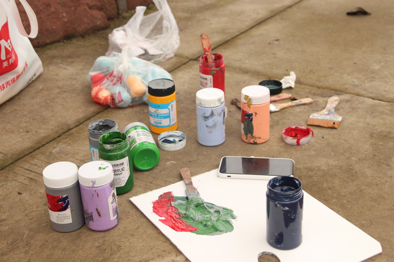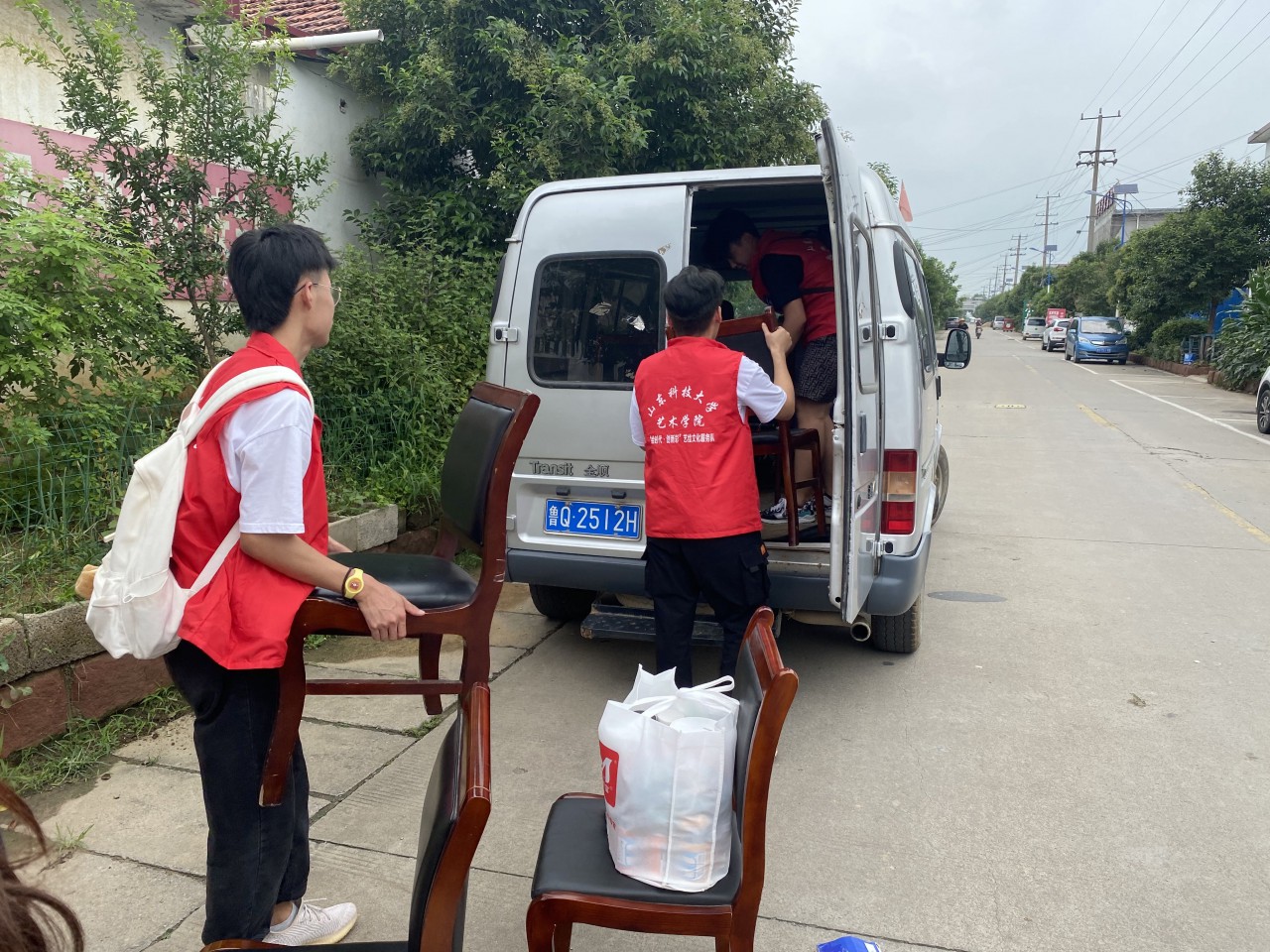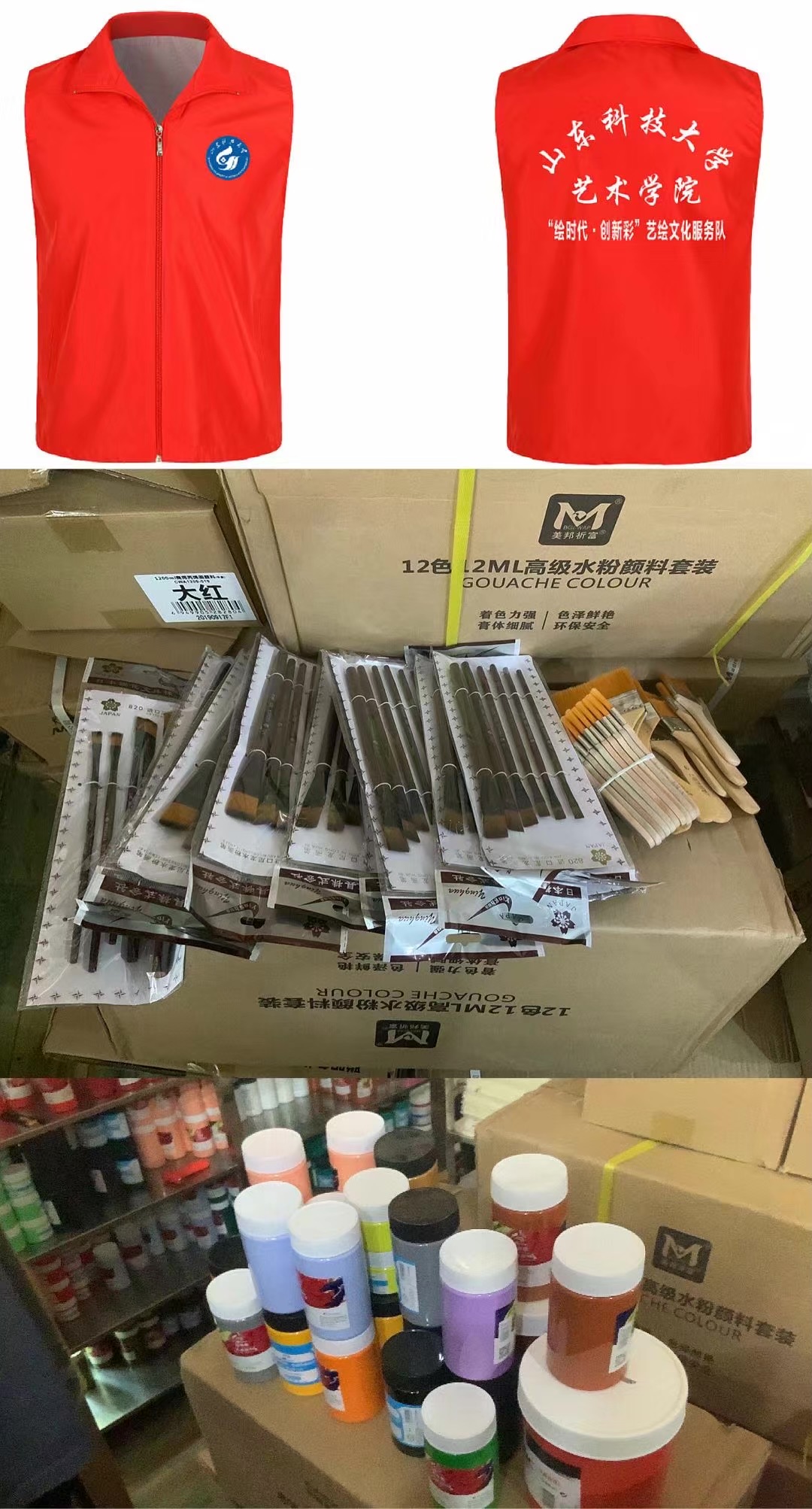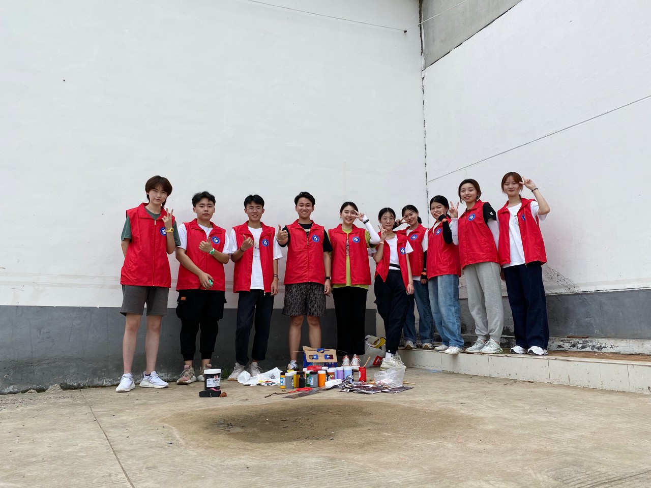 艺绘服务队的同学们经过十几天的精心筹备,共同设计制作了团队服装与队旗,运用专业知识制作了宣传海报,与兰陵县柞城村村支部书记讨论墙绘方案。三伏的酷暑天气不减成员们的热情,不惧烈日进行了购置画材,测量外墙长度等大量前期准备工作。