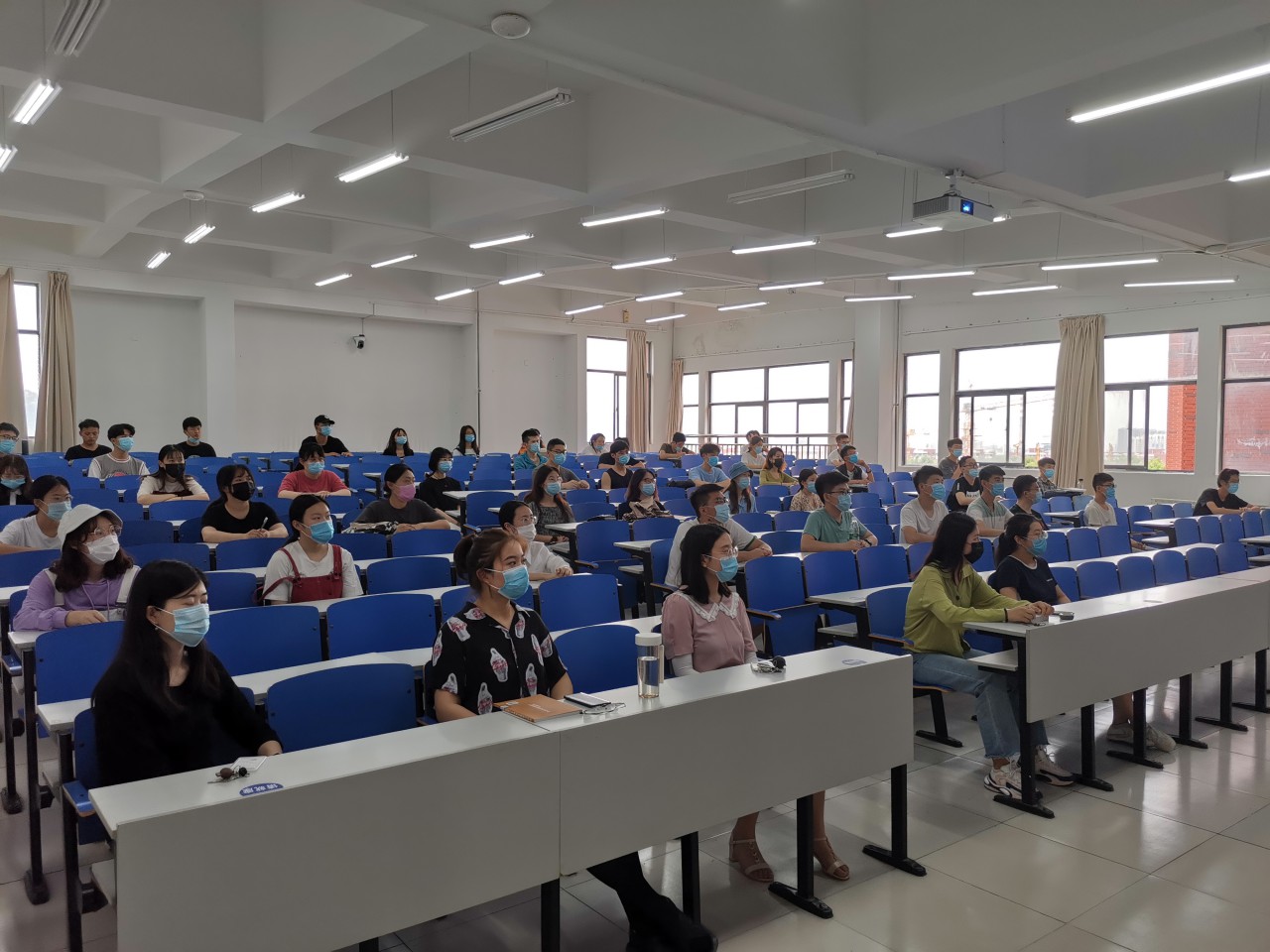 6月16日,艺术学院组织返校同学于J14-423教室、未返校同学线上收看校党委书记罗公利为全校学生上的一堂思政大课。