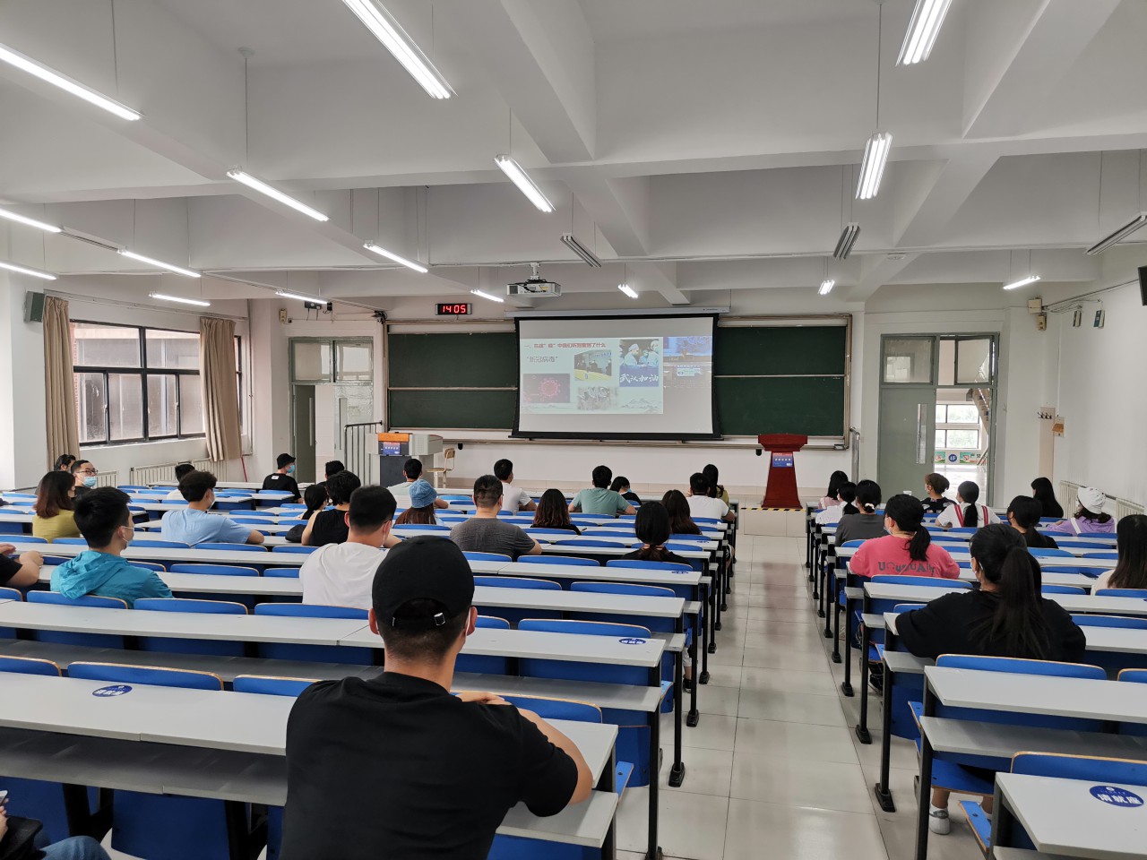 课上,罗公利书记以战‘疫’中我们一起成长为主题,围绕“在战‘疫’中我们听到看到了什么?”“在战‘疫’中我们想到悟到了什么?”“在战‘疫’中我们能做该做什么?”等三个方面展开讲解并通过大量真实数据及生动感人事例从不同角度为我们分析了中国精神、中国力量、中国担当在打赢此次疫情防控总体战阻击战中所起的重要作用。此外,罗公利还强调了中国共产党的坚强领导、中国特色社会主义制度的显著优势以及民族精神凝聚的强大合力的重要性,并教育广大青年学生们要继承和弘扬抗疫精神,勇于担当时代责任,听从党的号召,遵从党的指导,进一步坚定“四个自信”,为实现中华民族伟大复兴的中国梦奉献青春力量。