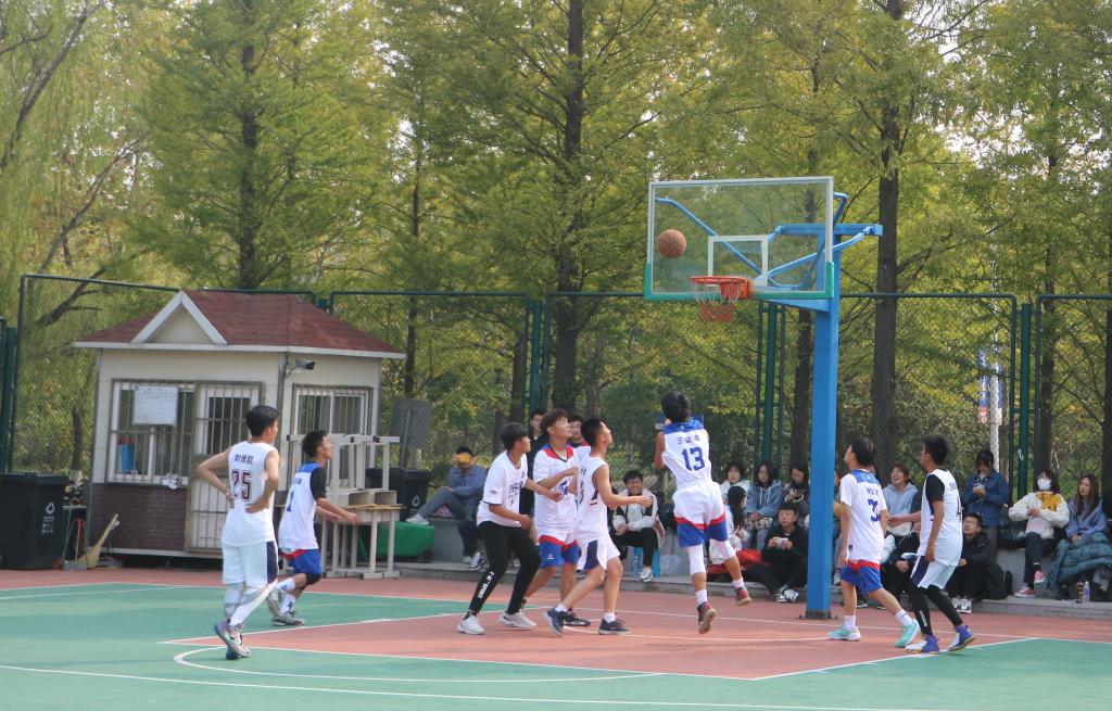 比赛伊始,篮球健儿们以矫健熟练的动作迅速传球,直逼篮板。双方队员都迅速进入状态,个个雄姿英发。在场上你争我夺、你攻我守,展开了一轮轮激烈的对抗。与此同时各方观众也不甘示弱,各个热情饱满,高声欢呼,球场气氛十分活跃。 产品设计专业和视觉传达专业的篮球运动员们你追我赶,打的难分伯仲。最终视觉传达专业以34:36的微小优势赢下这场比赛。而环境设计专业与音乐学专业球员之间的对抗则更加精彩,球员们各个神色肃穆、精神高度集中,场上的气氛十分热烈。最终以环境设计专业以52:20拿下这场胜利。