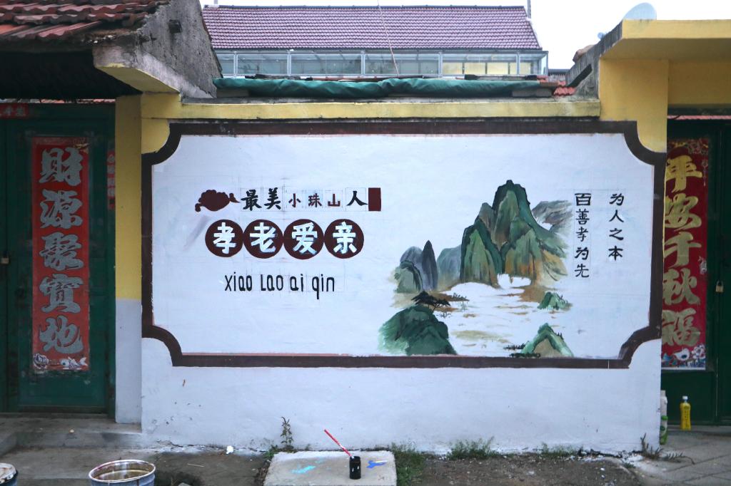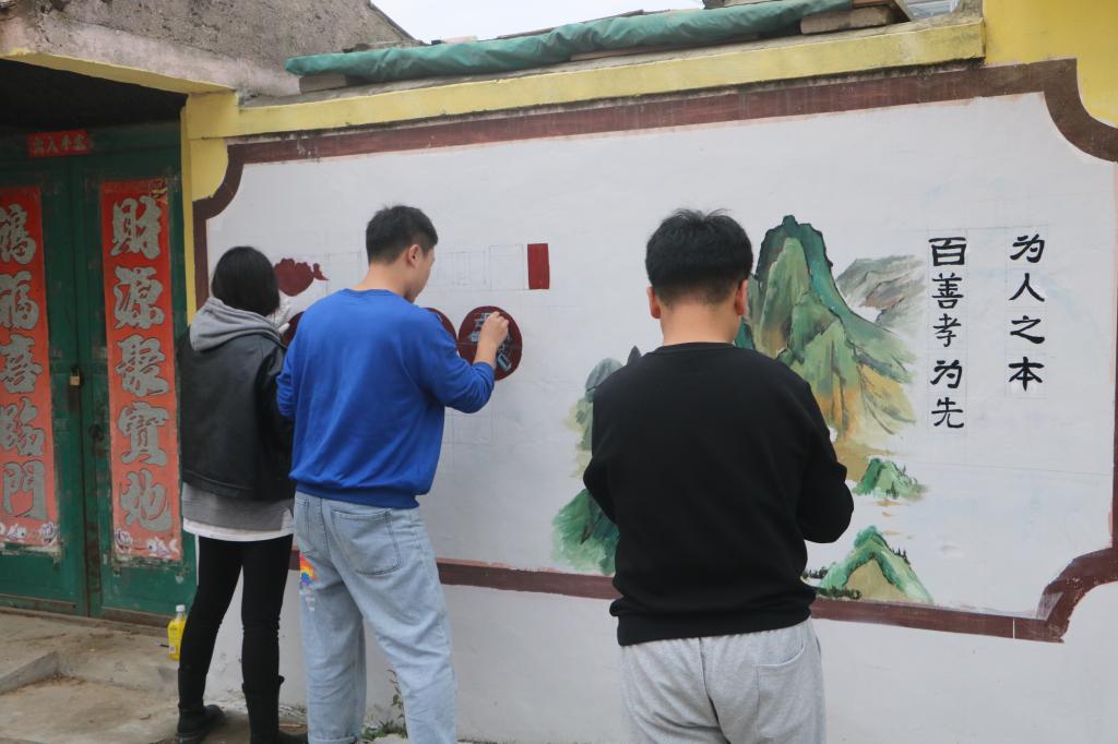 此次墙绘活动以我国优秀的传统文化为出发点,在将我国优秀传统文化融入墙绘活动的同时,将群众喜闻乐见的卡通人物与我国传统文化相结合,推出了一系列可爱又生动的卡通形象。活动过程中,同学们团结协作,立面粉刷、精描线稿、调和颜料、上墙涂色,每一步都分工明确、井井有条。用画笔描绘出学院的专业的魅力特色。最后,在志愿者共同的努力下,墙绘活动圆满完成,在当地留下了一道“新颖”的风景线。