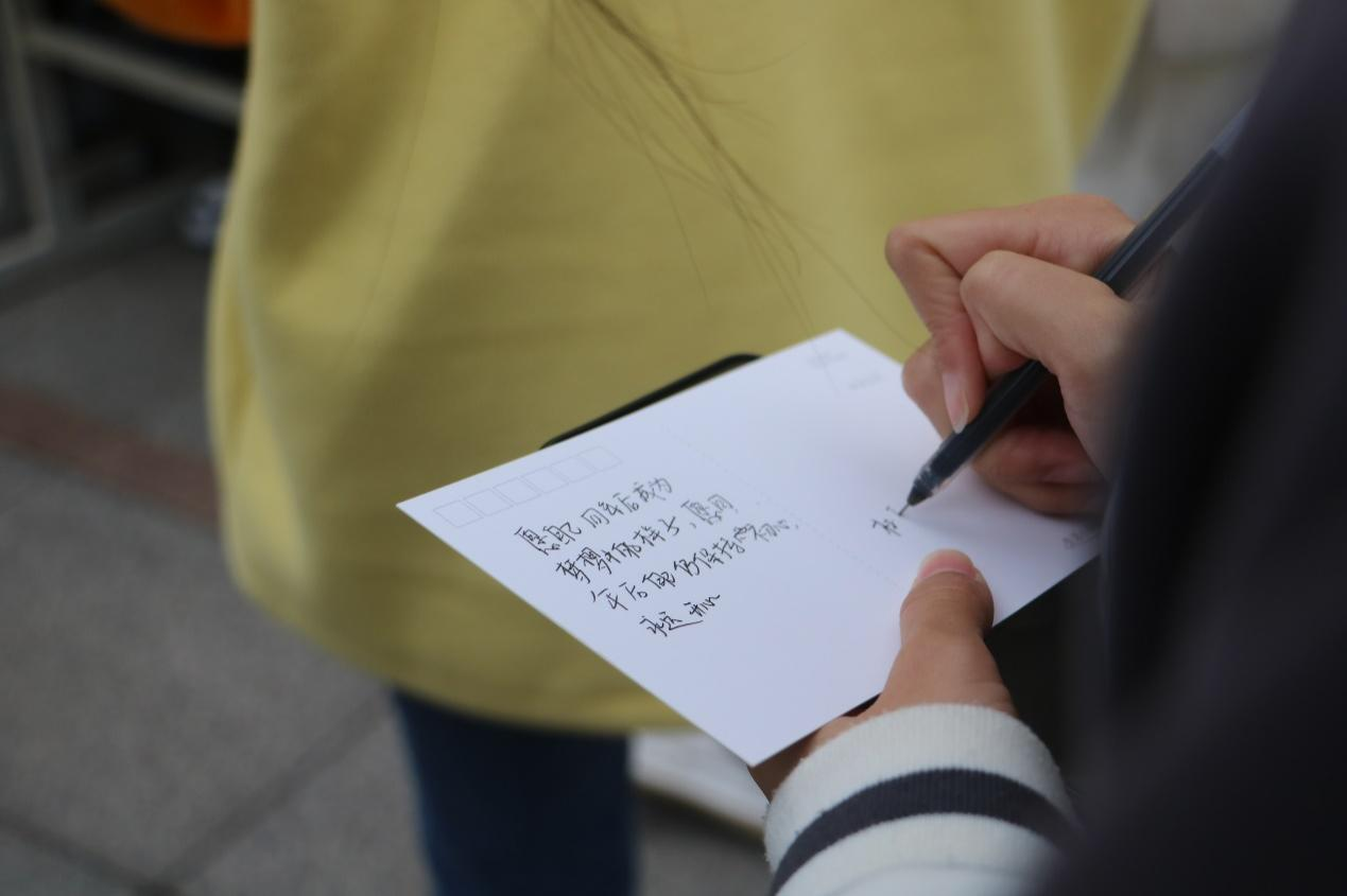活动开始,工作人员将准备好的明信片交由同学,让同学们畅所欲言,在明信片上写下对大学未来四年的憧憬与规划,完成后亲手将它投入“邮箱”。“邮箱”将由学院密封保存,在毕业之际学院会把明信片返还给大家,让同学们重新回忆起初入山科的自己。