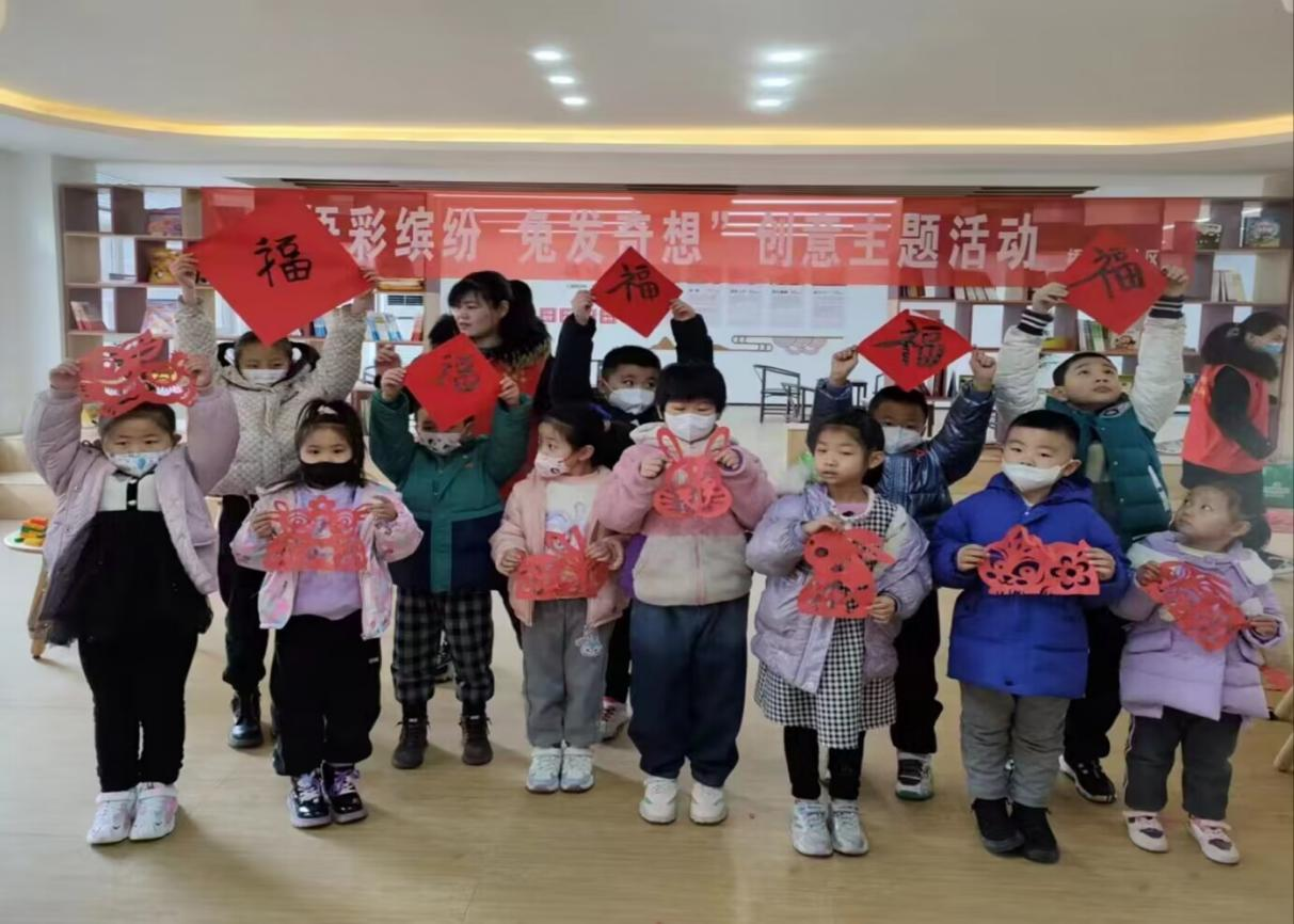 活动主要是以写福字、剪窗花的方式突出浓浓中国风,吸引了众多家长孩子参加。本次活动以小游戏开场,锻炼了儿童的敏捷性,消除了大家的陌生感。随后,孩子们在志愿者们的指导下,制作兔子窗花,也学习了“福”字的书写,志愿者一边向居民们表达节日的祝福,一边发放春联,把新春的祝福用春联的形式送到千家万户,获赠春联和“福”字的居民满脸洋溢着幸福的笑容。一张张充满新春气息的剪纸和一幅幅带有美好祝愿的福字,传递着对幸福生活的期盼,也给即将到来的春节增添了喜庆祥和的气氛。活动结束后,服务站工作人员与艺起绘志愿团队共同为参加本次活动的儿童颁发了小礼品,祝福孩子们新年快乐,茁壮成长!