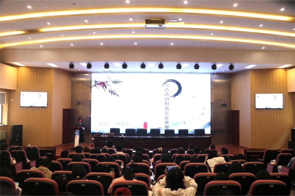 歌以咏志,乐以抒怀。古谱诗词中,有华夏文明源远流长的诗乐审美和气韵。在讲座上,张建华以古曲为引,带领大家了解了诗歌的古典韵味,探讨了我国宋代古谱诗词的发展脉络和代表人物作品,通过形象的讲述和趣味十足的互动,引发大家对古诗词音乐的好奇,引导师生展开思考。