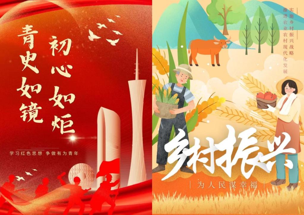 活动前期,团队对乡村振兴进行了深入调研,旨在探寻乡村振兴的实践经验与发展方向。在调研中深入农村地区,与当地政府官员、农民代表、企业家等进行了交流,听取了他们对乡村振兴的看法和建议。调研发现,一些地方通过推动农村产业升级、加强基础设施建设、促进农民增收等举措,取得了显著成效。一些特色小镇、乡村旅游景区等新兴业态兴起,一些农民通过种植特色农产品、发展乡村旅游等途径,实现了增收致富。对此,艺绘文化服务队结合自身专业特色把调研成果转化为艺术海报,海报设计融合了传统与现代元素,以鲜明的色彩和简洁的线条呈现了乡村的美丽与活力。海报内容涵盖了乡村旅游、生态农业、文化传承等多个方面,旨在展示乡村发展的多元可能性和广阔前景。同时,海报还注重与当地村民的互动,邀请村民参与设计过程,让海报更贴近乡村实际,更具感染力。同时,团队还精心制作了一系列关于乡村红色文化的短视频。这些视频不仅展现了红色文化的历史背景,还通过实地探访、人物访谈等形式,让观众感受到乡村红色文化的独特魅力和时代价值。