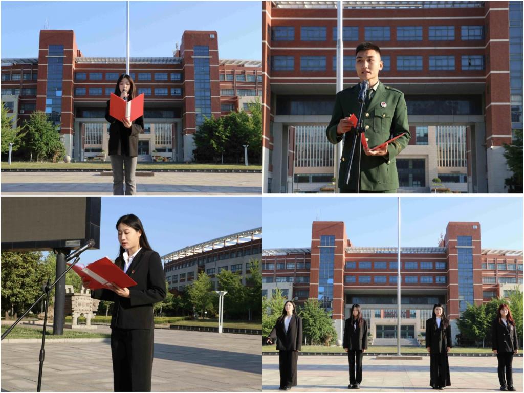 升旗结束后,由音乐学2022级庄舒涵同学主持本次国旗下的爱国主义宣讲。音乐学2022级刘天尧同学为大家宣读了爱国教育的相关方案,在全校范围开展“七十五载颂春秋•勇担强国新使命召唤”主题教育活动。视觉传达设计2023级史翘楚同学作为退伍兵代表,为大家进行国防教育宣讲,他强调了国防安全的重要意义以及如何认识总体国家安全观。同时呼吁同学们积极响应国家应征入伍号召,展现新时代青年的使命与担当。视觉传达设计2021级杨淼同学进行国旗下的爱国教育主题演讲,抒发了爱党爱国的情感,深刻领悟了爱国主义的精神内涵,展现了学院爱党爱国的浓厚氛围。仪式最后,由音乐学2023级董一诺、刘梓轩、石韫萌、杨羽桐同学带领大家合唱歌曲《我爱你中国》,动听的歌声更是传达了艺术学子对祖国深深的热爱。