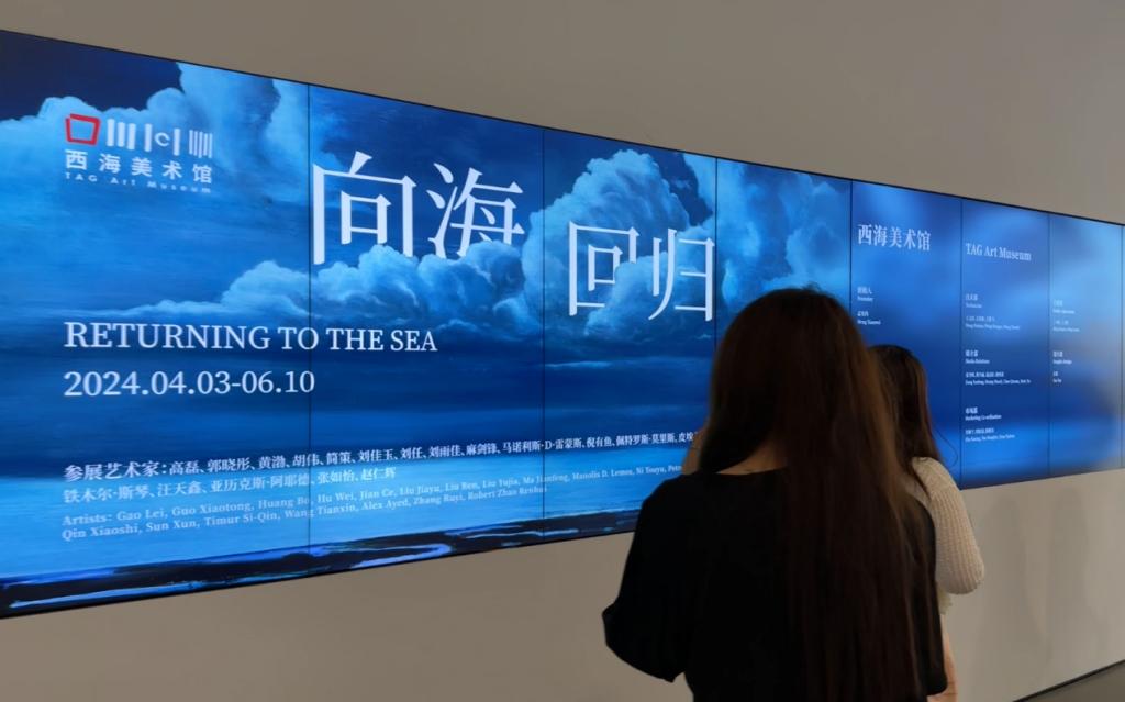 该展览是TAG·西海美术馆确立的“国际化当代艺术”和“可持续”理念的体现,展示来自全球二十余位当代艺术家的以海为命题融合多学科利用不同形式的创作实践的艺术品。其中,黄渤的雕塑作品《浊浪》亮相家乡展馆,巨石落水激起混浊海浪,其中夹杂着各种生活垃圾,他把垃圾变成晶莹剔透,动感韵律的艺术品传递着保护海洋环境的意义。艺术家倪有鱼作品《海面》以海平线为基准,将各个年代照片拼贴在一起,见微知著,寓意即使在点点滴滴中也要时刻关注自然环境的变化。在展会中还设有图书阅览区域,通过阅读海洋相关的书籍及绘本,将展览的主题延伸至展览空间之外,让更多师生了解到人类与海洋的密切关系。大家认真学习、仔细体会作品的意境,相互讨论,交流感想,在切身感受艺术熏陶的同时提高对环境保护的认识。
