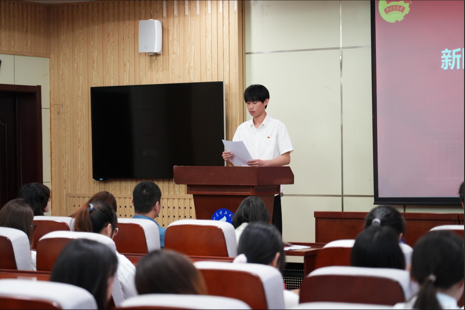 4月29日下午,必赢3003no1线路检测中心于J9-135举办2025年新发展团员入团仪式。必赢3003no1线路检测中心团委书记牟杰、辅导员李云坤老师、于靖雯老师以及优秀团员代表和新发展团员出席仪式,仪式由刘汉威老师主持。