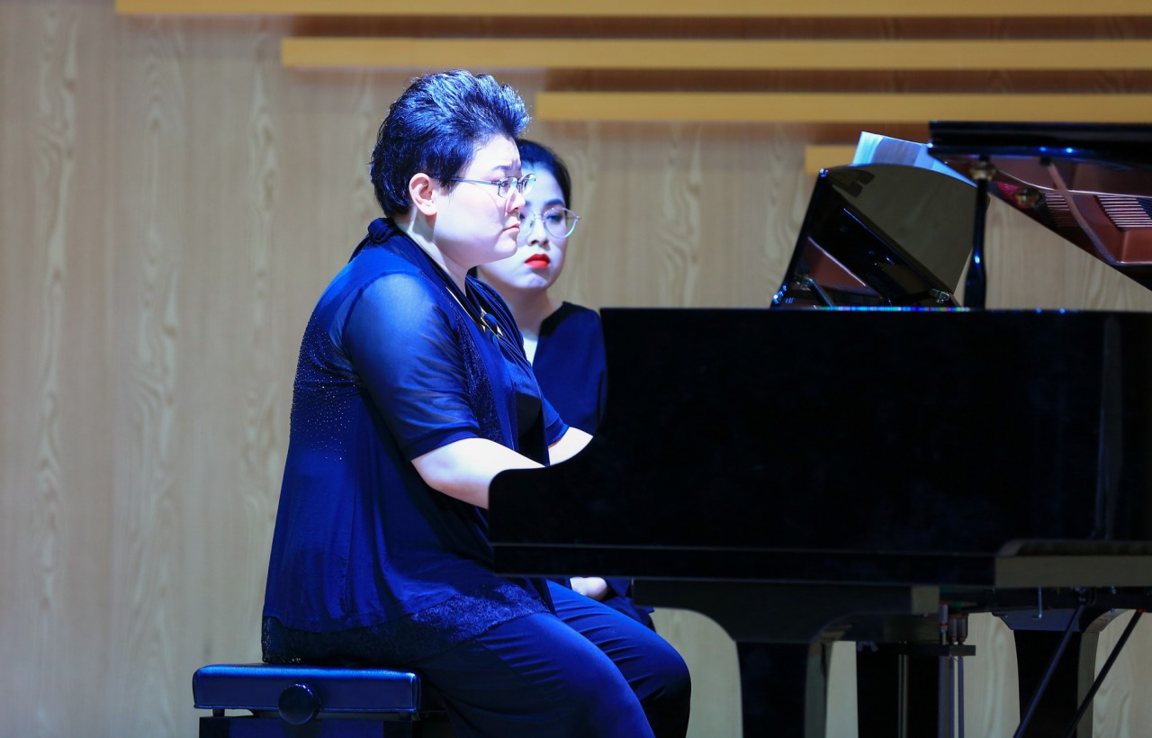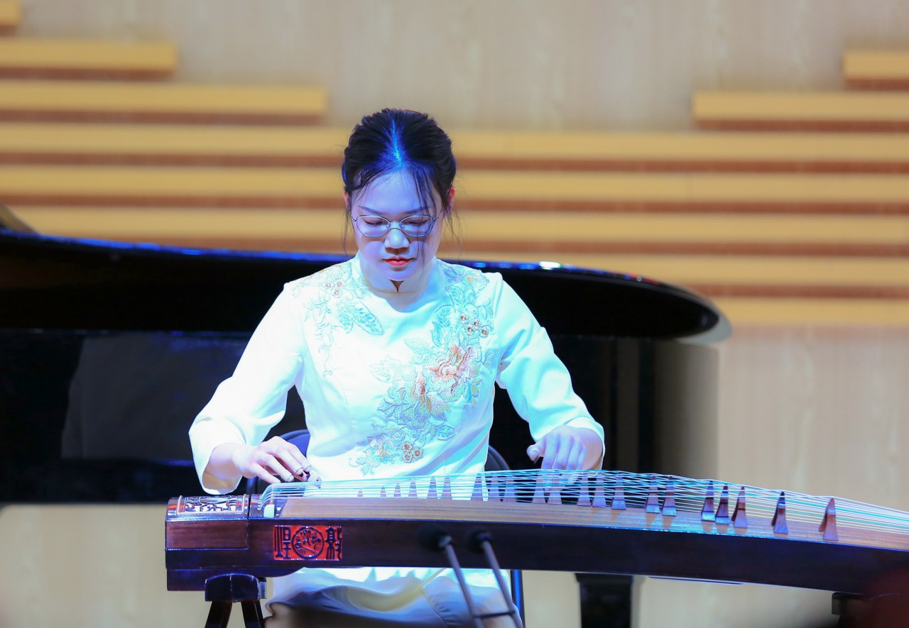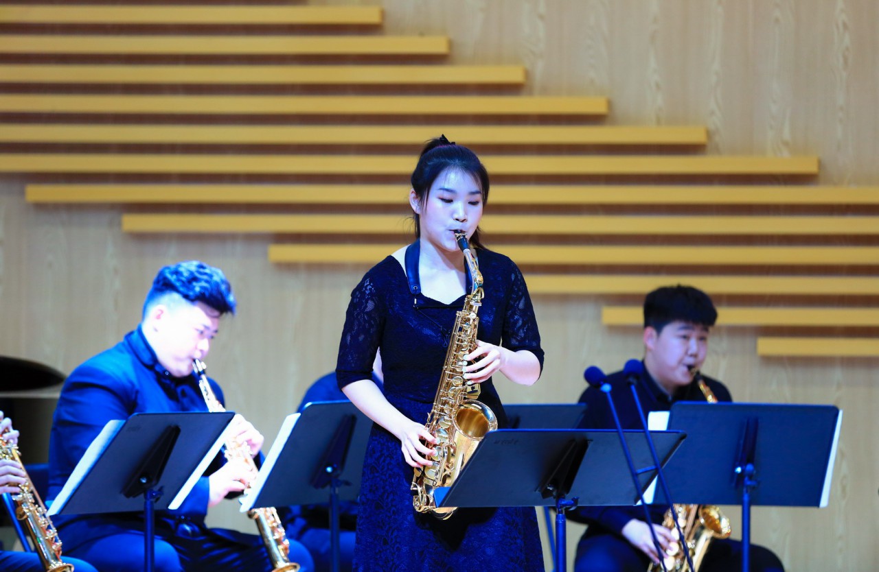 音乐会在金晶民族乐团的《春节序曲》、《夜来香》中拉开帷幕。金晶民族乐团与陈喜红老师合作演出的《没有强大的祖国哪有幸福的家》无论我们身在何处,祖国永远是我们强大的后盾,呵护着每一个幸福的家庭和每一个炎黄子孙。天齐合唱团演唱了音乐系学子孙国栋为迎接70周年校庆创作的作品《家国》,向学校致敬、向国家致敬,展现了对伟大祖国的深深热爱。音乐系薛源老师的二胡独奏《桃花坞》、曲艺老师的钢琴独奏《蓝色狂想曲》、潘天舒老师的琵琶协奏曲《花木兰》、侯玉喆老师的古筝协奏曲《云裳诉》、吴欣源老师男高音独唱《被禁止的音乐》以及女声小合唱《四季的问候》等形式多样的精湛表演赢得了阵阵掌声;室内乐《岩石上的牧羊女》将郑晓晴老师的声乐演唱与马梓洛老师的单簧管演奏、孟辰老师的钢琴演奏结合起来,别具艺术特色;钢琴八手联弹《加洛普进行曲》由孟辰、董梅、姜薇、曲艺老师共同演绎,热烈的情绪将演出推向高潮。萨克斯重奏《拉德茨基进行曲》作为压轴曲目,为整场音乐会画上圆满的句号。
