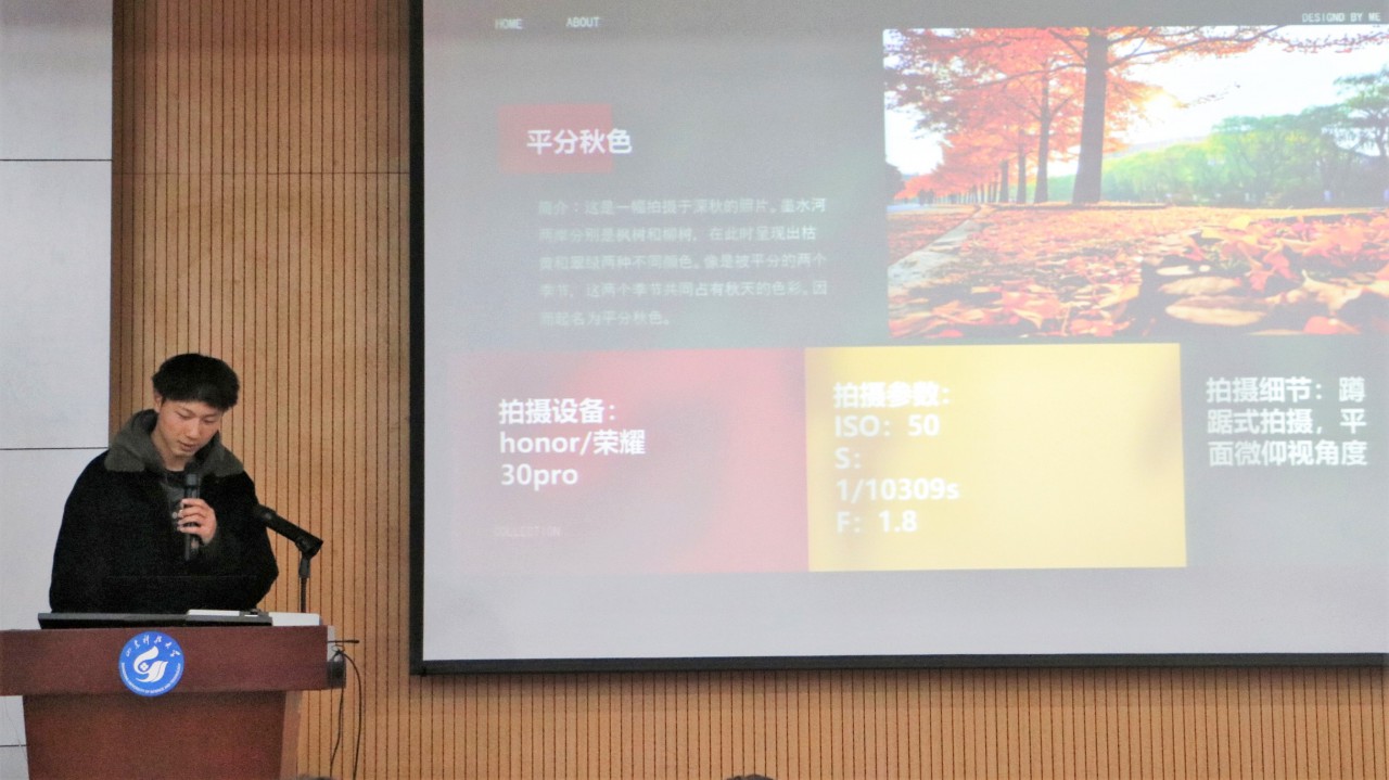 经过前期初赛、复赛的层层筛选,全校共有十六位选手脱颖而出进入决赛参与答辩。决赛赛程分为上下两场,每位选手分别有三分钟的时间对参赛作品的拍摄背景、拍摄手法及色彩、光线与构图等方面的进行解析,将作品以更完整的形式展示。在紧张的计分之余,必赢3003no1线路检测中心和经济管理学院的学生为大家带来精彩的歌曲《追梦赤子心》和舞蹈《How you like that》表演,缓解了比赛的紧张气氛。最后经过激烈的答辩角逐,共评选出十位获奖选手。苏冉、张泺陶获得一等奖;玛妮、王朝锋、毕钰晗获得二等奖;王震、刘学俊、于靖雯、李泽岩、李心茹获得三等奖。